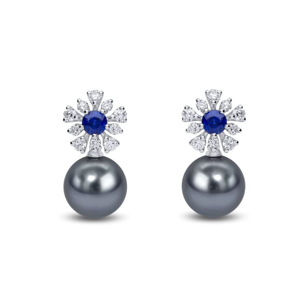 18ct WG Tahitian Pearl, Diamond & Sapphire Studs`