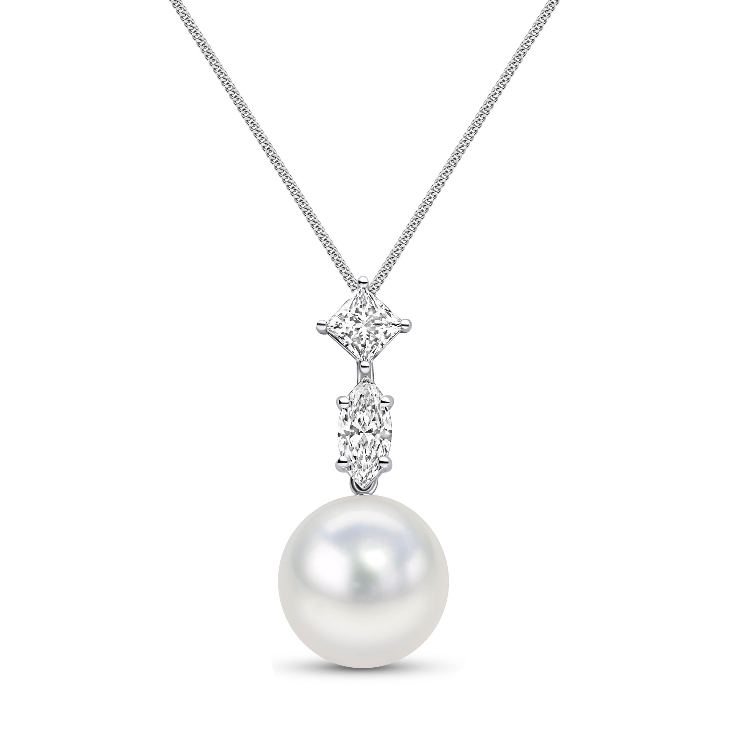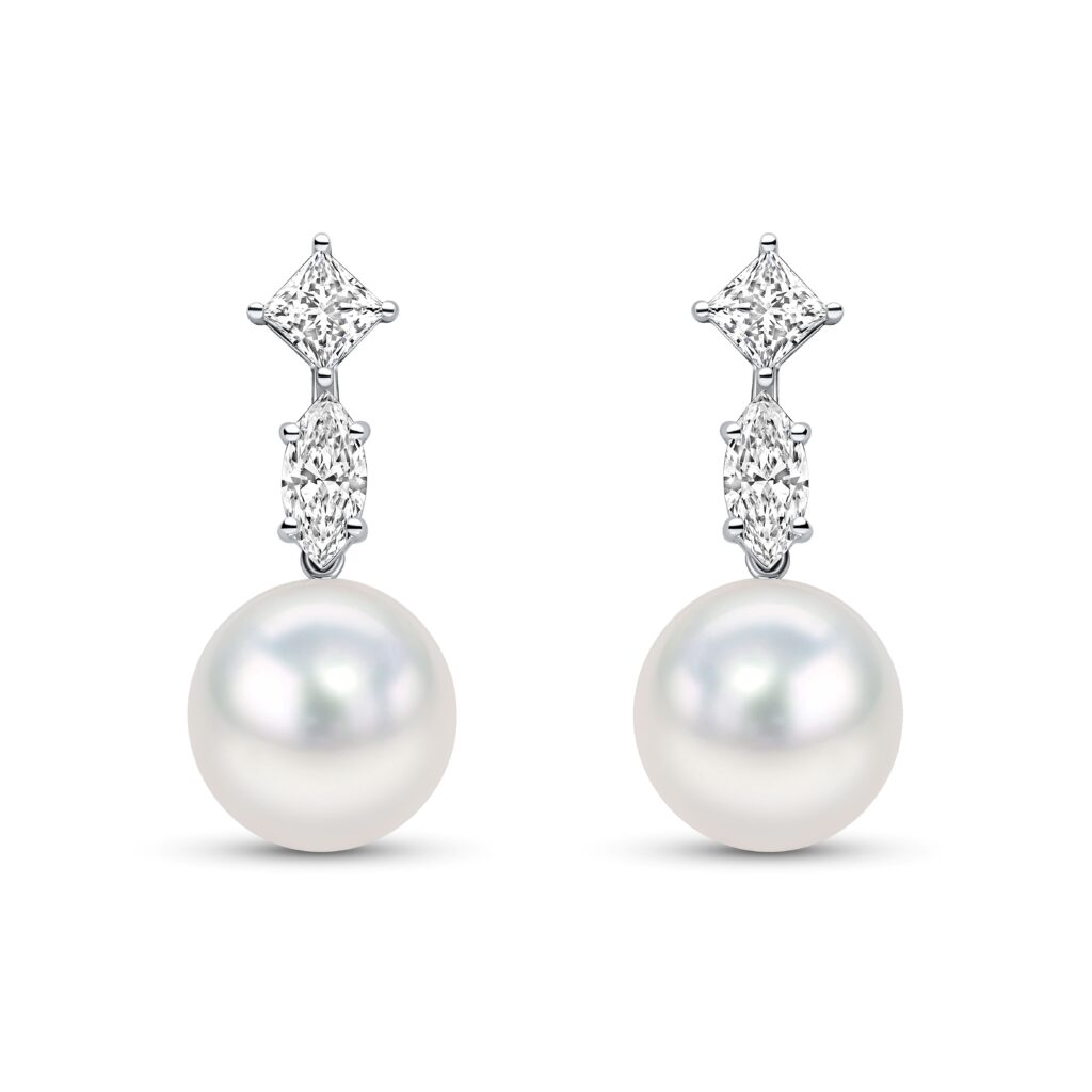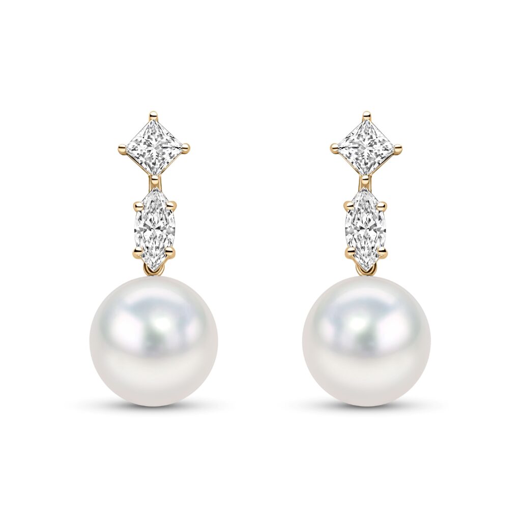 18ct South Sea Pearl & Fancy-cut Diamond Studs