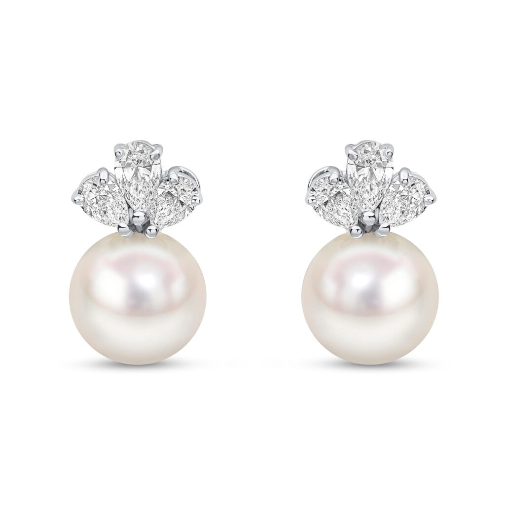 18ct WG South Sea Pearl & Multi Diamond Studs