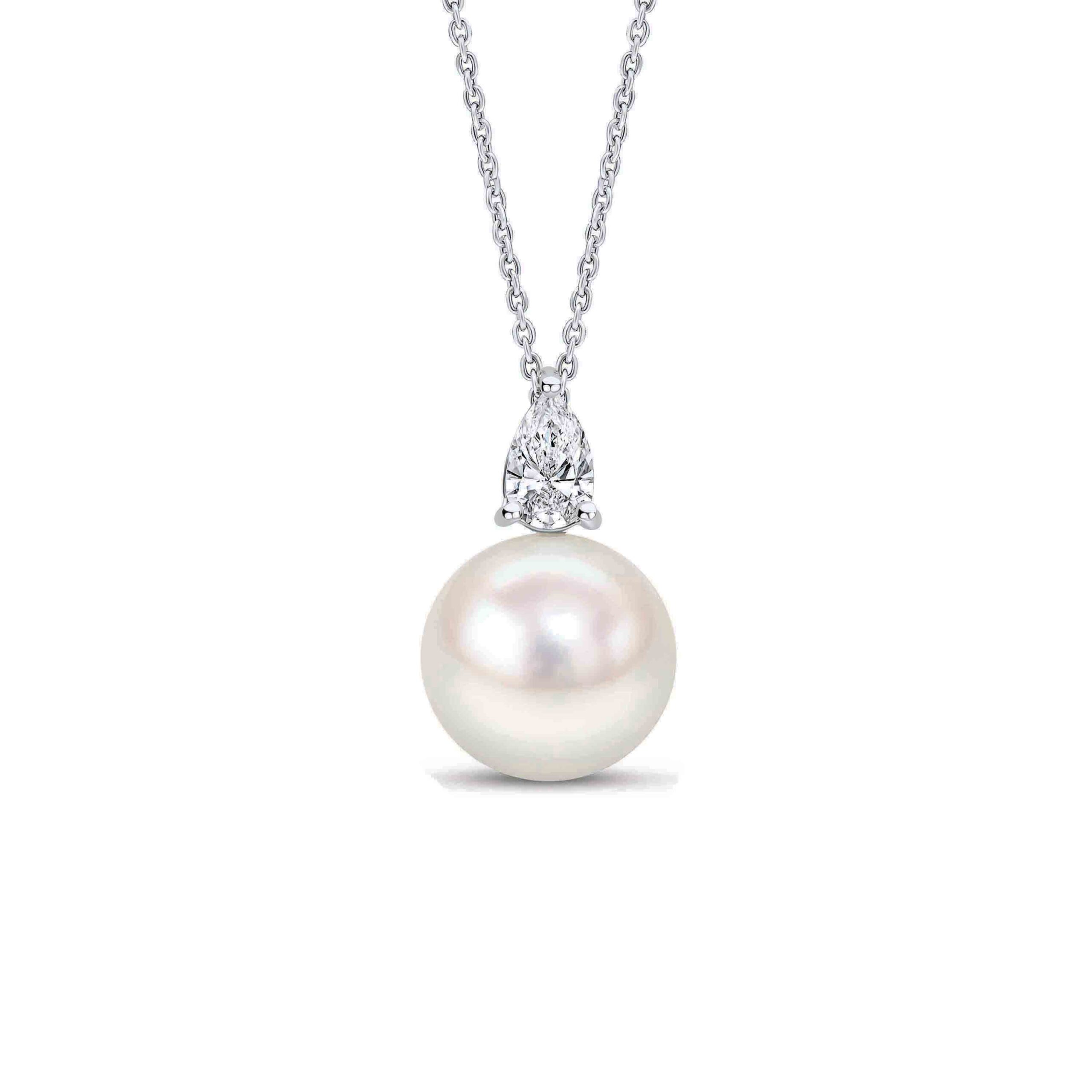 18ct WG Akoya Pearl & Pear Cut Pendant