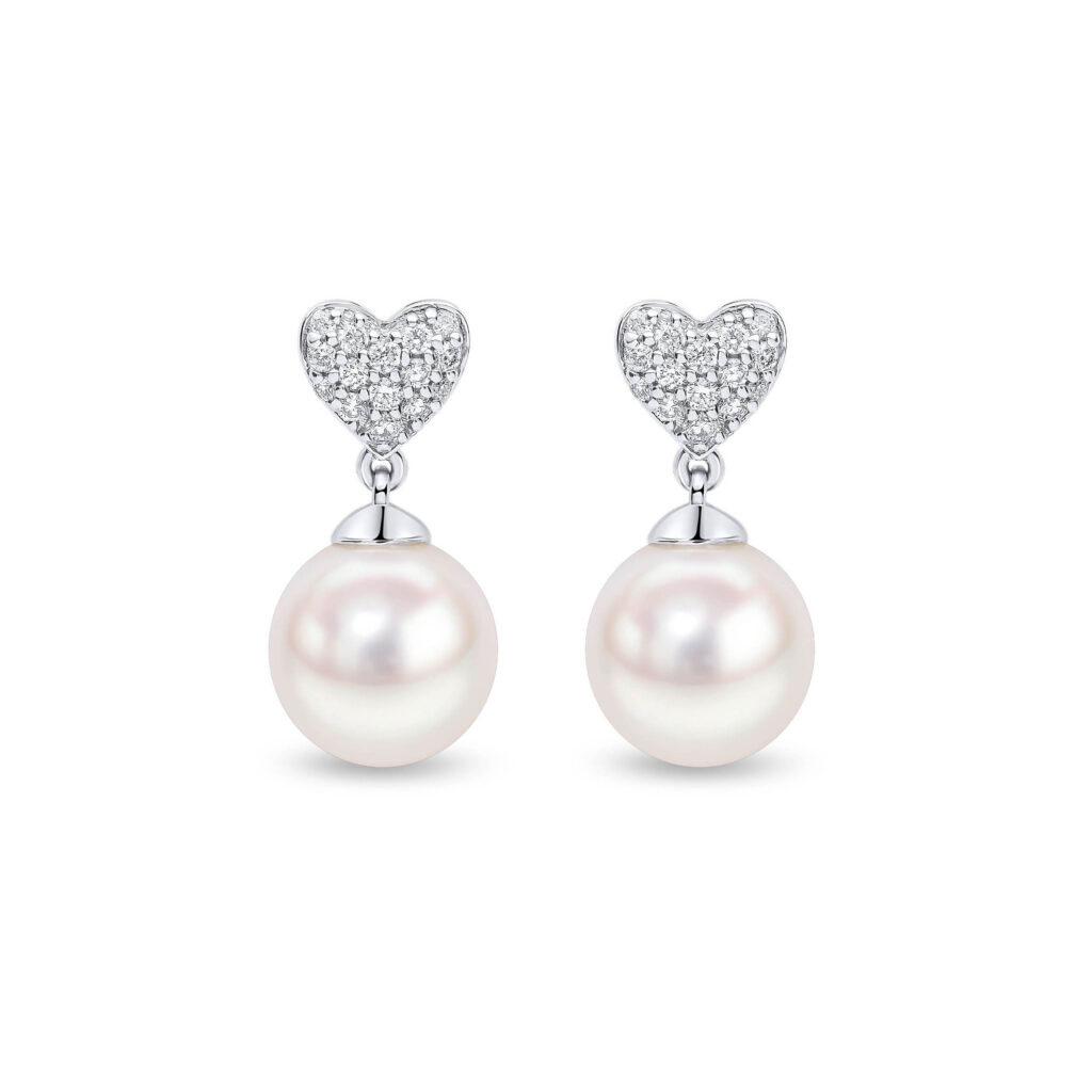 9ct WG Freshwater Pearl & Diamond Heart Studs