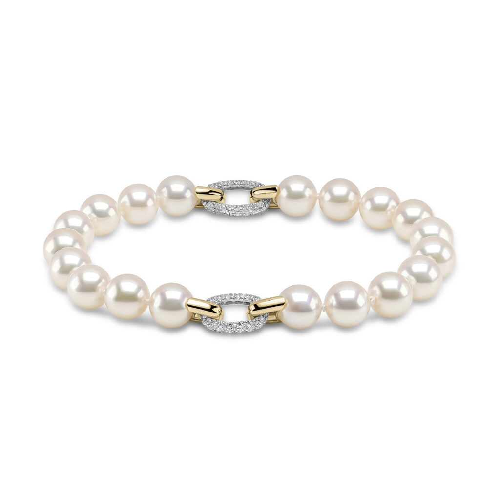 18ct Bi-colour Akoya Pearl & Diamond Bracelet