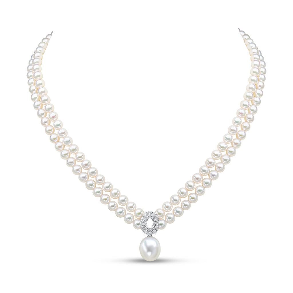 18ct WG Akoya South Sea Pearl & Diamond 2-Row Necklace